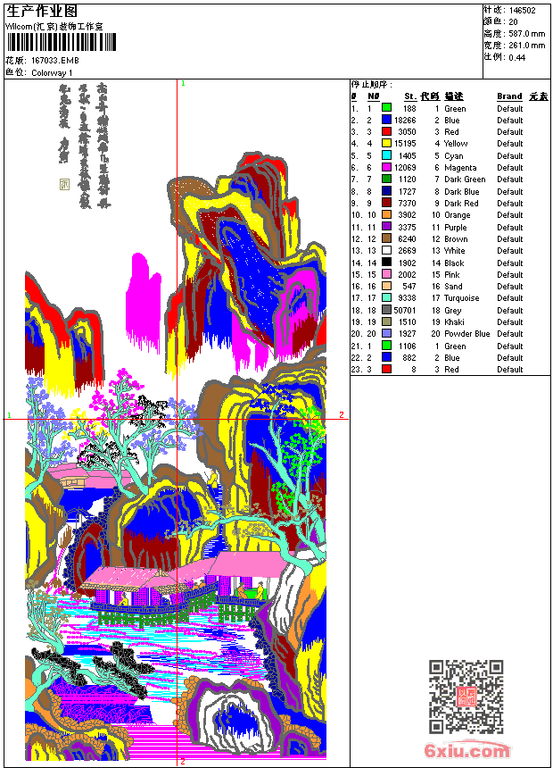 山水画-风景工艺刺绣图 点此上传花版兑乐绣币/现金 emb花版参数: 大小:506.50 KB / 尺寸:261*587[毫米] / 针数:146502针 / 线色:20 / 格式:emb / 版本:7 版带文件需绣花软件方可打开,可配色打印导出各种格式或直接上机绣。如无绣花软件可下载1:1模拟效果图。 PNG图片信息:大小:3.3 (MB) /图宽*高:988x2221(像素) 上传作者( fcx1*** ) 获得乐绣币:20个 emb下载 1:1图下载 关闭 相似花型推荐: 田间别墅 山水人家-风景类刺绣工艺挂画 奋斗铭志 钓鱼组合 陈年老友 长相思 账神到工艺图案 把握人生-刺绣工艺版带 D10小熊 D9-卡通熊 D8熊博士 D7_麦穗标志刺绣 D6_标志刺绣LOGO D5-珠片绣蝴蝶 D4福 上一个花样:圆福混合绣-毛巾绣 下一个花样:田间别墅