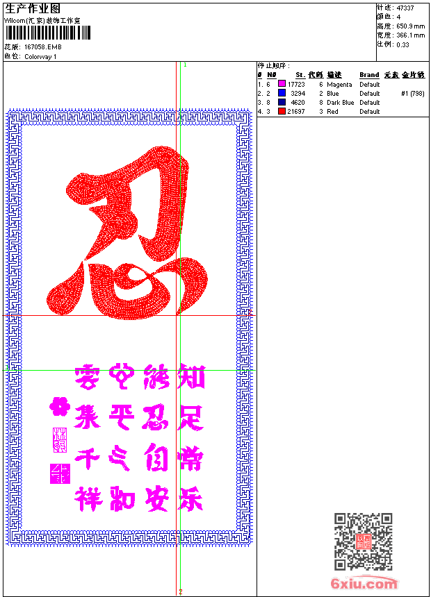 知足常乐之忍-毛巾绣 点此上传花版兑乐绣币/现金 emb花版参数: 大小:192.50 KB / 尺寸:366*651[毫米] / 针数:47337针 / 线色:4 / 格式:emb / 版本:7 版带文件需绣花软件方可打开,可配色打印导出各种格式或直接上机绣。如无绣花软件可下载1:1模拟效果图。 PNG图片信息:大小:1.6 (MB) /图宽*高:1385x2462(像素) 上传作者( fcx1*** ) 获得乐绣币:15个 emb下载 1:1图下载 关闭 相似花型推荐: 太阳之花 五星立体小标 立体商标 方喜(小的平绣-毛巾) 恭喜发财之米奇(毛巾绣) 小熊 财神_工艺精品版 两只蝴蝶 保罗 袋鼠 小兔 小狗 鸟语 奶牛 梅-梅花刺绣 精品 上一个花样:毛巾小狗 下一个花样:太阳之花