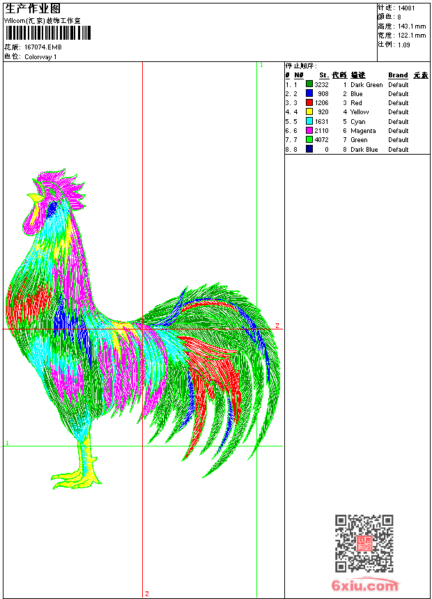 公鸡 点此上传花版兑乐绣币/现金 emb花版参数: 大小:66.50 KB / 尺寸:122*143[毫米] / 针数:14081针 / 线色:8 / 格式:emb / 版本:9 版带文件需绣花软件方可打开,可配色打印导出各种格式或直接上机绣。如无绣花软件可下载1:1模拟效果图。 PNG图片信息:大小:0.3 (MB) /图宽*高:462x542(像素) 上传作者( hjl8*** ) 获得乐绣币:10个 emb下载 1:1图下载 关闭 相似花型推荐: 章仔 蝎子 水仙 圣诞树 龙工艺精品 猫2-咖啡猫 菊 标 背靠背 保罗 章-鲨鱼章仔 后袋 乔丹 熊猫鞋垫-毛巾刺绣 毛巾小狗 上一个花样:马-骑马的牛仔 下一个花样:章仔