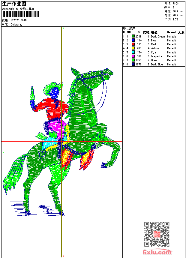 马-骑马的牛仔 点此上传花版兑乐绣币/现金 emb花版参数: 大小:52.50 KB / 尺寸:77*97[毫米] / 针数:7808针 / 线色:8 / 格式:emb / 版本:9 版带文件需绣花软件方可打开,可配色打印导出各种格式或直接上机绣。如无绣花软件可下载1:1模拟效果图。 PNG图片信息:大小:0.1 (MB) /图宽*高:291x366(像素) 上传作者( hjl8*** ) 获得乐绣币:20个 emb下载 1:1图下载 关闭 相似花型推荐: 公鸡 章仔 蝎子 水仙 圣诞树 龙工艺精品 猫2-咖啡猫 菊 标 背靠背 保罗 章-鲨鱼章仔 后袋 乔丹 熊猫鞋垫-毛巾刺绣 上一个花样:毛主席 下一个花样:公鸡