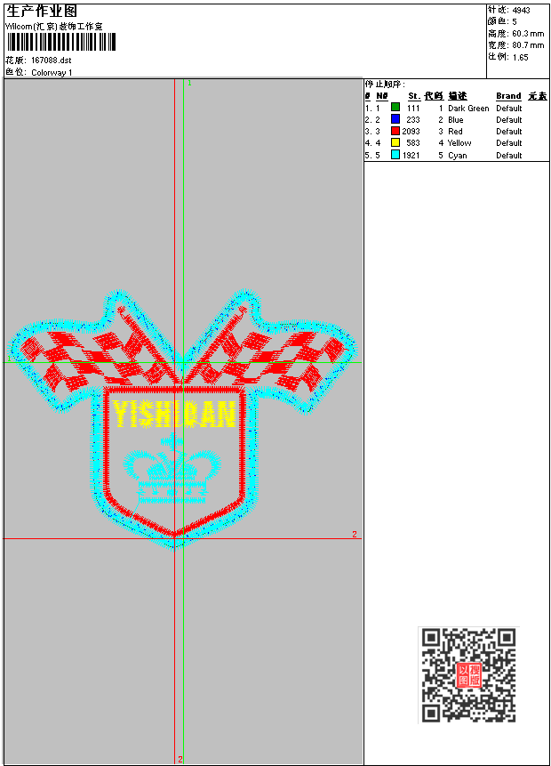 标 点此上传花版兑乐绣币/现金 dst花版参数: 大小:14.98 KB / 尺寸:81*60[毫米] / 针数:4943针 / 线色:5 / 格式:dst / 版本:6 版带文件需绣花软件方可打开,可配色打印导出各种格式或直接上机绣。如无绣花软件可下载1:1模拟效果图。 PNG图片信息:大小:0.1(MB) /图宽*高:306x229(像素) 上传作者( 美美*** ) 获得乐绣币:10个 dst下载 1:1图下载 关闭 相似花型推荐: 标志刺绣图 章仔 竖排字母刺绣 刺绣珠片数字 运动标志刺绣 电脑字母 刺绣超人奥特曼 刺绣字母LOGO 刺绣旗帜 三角形刺绣章仔 羞涩的爱-电脑十字绣 毛主席 马-骑马的牛仔 公鸡 章仔 上一个花样:卡通刺绣熊 下一个花样:标志刺绣图