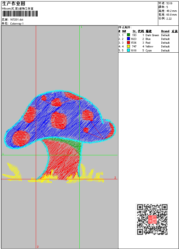 小蘑菇 点此上传花版兑乐绣币/现金 dst花版参数: 大小:16.08 KB / 尺寸:60*49[毫米] / 针数:5319针 / 线色:5 / 格式:dst / 版本:6 版带文件需绣花软件方可打开,可配色打印导出各种格式或直接上机绣。如无绣花软件可下载1:1模拟效果图。 PNG图片信息:大小:0.1(MB) /图宽*高:227x187(像素) 上传作者( fcx1*** ) 获得乐绣币:10个 dst下载 1:1图下载 关闭 相似花型推荐: 美丽的花边 字母标 恭贺新禧 NIKE 福娃晶晶 福娃欢欢 福寿安康-吉祥刺绣祝福工艺版 凤凰 十二生肖-蛇 polo 牛 狗狗,贴布绣卡通 小狗 奥特曼_贴布绣 福-福字刺绣-电脑十字绣 上一个花样:一支玫瑰 下一个花样:美丽的花边