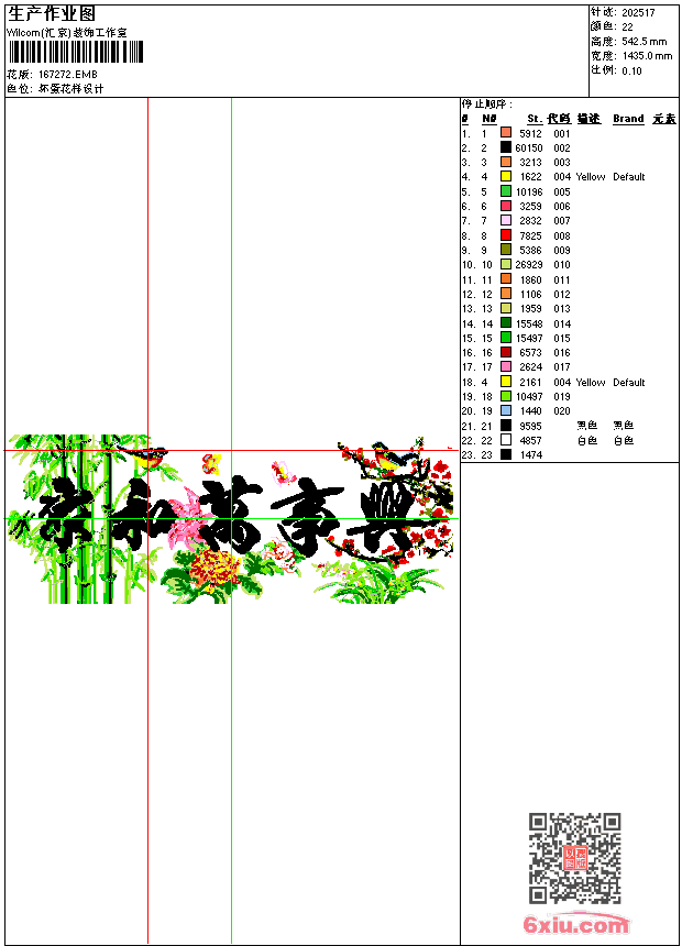 家和万事兴-电脑十字绣 点此上传花版兑乐绣币/现金 emb花版参数: 大小:114.00 KB / 尺寸:1435*543[毫米] / 针数:202517针 / 线色:22 / 格式:emb / 版本:9 版带文件需绣花软件方可打开,可配色打印导出各种格式或直接上机绣。如无绣花软件可下载1:1模拟效果图。 PNG图片信息:大小:6.6 (MB) /图宽*高:5428x2052(像素) 上传作者( 1784*** ) 获得乐绣币:23个 emb下载 1:1图下载 关闭 相似花型推荐: 鹤 美少女 凤_凤凰站枝头刺版 玫瑰 莲_莲花_莲子 抽象太阳花 蝴蝶与花卉的抽象图 抽象花 祝酒词 抽象花卉刺绣 宝剑 卡通猴 衣领刺绣 小人形状刺绣 英文字母刺绣标 上一个花样:树叶 下一个花样:鹤