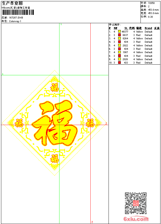 五福图 点此上传花版兑乐绣币/现金 emb花版参数: 大小:247.50 KB / 尺寸:453*453[毫米] / 针数:72050针 / 线色:2 / 格式:emb / 版本:9 版带文件需绣花软件方可打开,可配色打印导出各种格式或直接上机绣。如无绣花软件可下载1:1模拟效果图。 PNG图片信息:大小:1.2 (MB) /图宽*高:1714x1714(像素) 上传作者( 子夜*** ) 获得乐绣币:20个 emb下载 1:1图下载 关闭 相似花型推荐: 虎头刺绣版带 糗耙耙 小花 福寿禄喜 万事如意 抽象花 夏威夷风光 袖标 字-知己 奥黛丽赫本像 树叶 家和万事兴-电脑十字绣 鹤 美少女 凤_凤凰站枝头刺版 上一个花样:熊猫 下一个花样:虎头刺绣版带