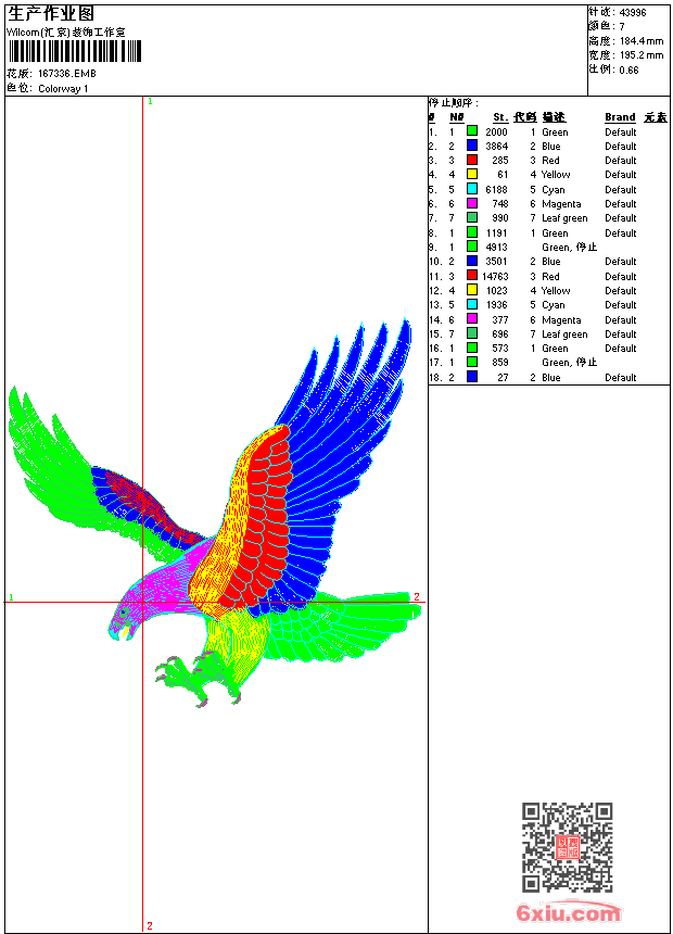 雄鹰展翅 点此上传花版兑乐绣币/现金 emb花版参数: 大小:223.00 KB / 尺寸:195*184[毫米] / 针数:43996针 / 线色:7 / 格式:emb / 版本:7 版带文件需绣花软件方可打开,可配色打印导出各种格式或直接上机绣。如无绣花软件可下载1:1模拟效果图。 PNG图片信息:大小:0.5 (MB) /图宽*高:739x698(像素) 上传作者( 1352*** ) 获得乐绣币:25个 emb下载 1:1图下载 关闭 相似花型推荐: 皇冠 5福娃 马球标志 花边 花边216头距 条码花边 抽象大花 太极图 小熊_维尼熊版带免费下载 可爱白鲨鱼 长颈鹿-卡通刺绣图 蝴蝶花 素雅胸花 成功之路-文字工艺版 龙凤双喜吉祥刺绣 上一个花样:章-Logo 下一个花样:皇冠