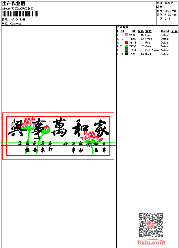 家和万事兴_电脑十字绣_十字绣刺绣 精品 点此上传花版兑乐绣币/现金 emb花版参数: 大小:382.50 KB / 尺寸:710*300[毫米] / 针数:106637针 / 线色:6 / 格式:emb / 版本:9 版带文件需绣花软件方可打开,可配色打印导出各种格式或直接上机绣。如无绣花软件可下载1:1模拟效果图。 PNG图片信息:大小:1.6 (MB) /图宽*高:2686x1135(像素) 上传作者( 啊冠*** ) 获得乐绣币:28个 emb下载 1:1图下载 关闭 相似花型推荐: 猛虎下山 圣诞老人-毛巾绣法花版 鱼 鲤鱼 荷花 年年有余 美女 精品莲花 天使-毛巾绣 叶子 卡通飞机 皇冠 卡通猫 马 水溶大花-中东旗袍版带 章-Logo 雄鹰展翅 皇冠 上一个花样:大肚佛 下一个花样:猛虎下山