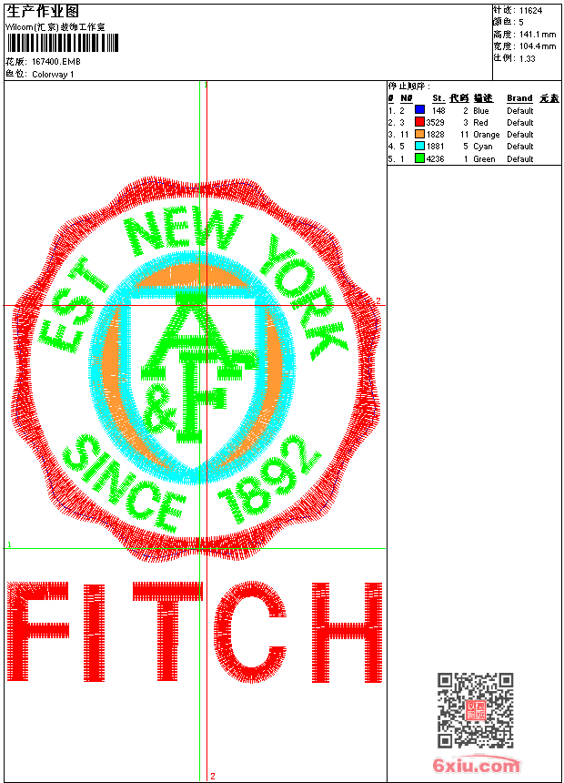 A&FITCH 2 点此上传花版兑乐绣币/现金 emb花版参数: 大小:57.50 KB / 尺寸:104*141[毫米] / 针数:11624针 / 线色:5 / 格式:emb / 版本:7 版带文件需绣花软件方可打开,可配色打印导出各种格式或直接上机绣。如无绣花软件可下载1:1模拟效果图。 PNG图片信息:大小:0.2 (MB) /图宽*高:395x534(像素) 上传作者( semi*** ) 获得乐绣币:6个 emb下载 1:1图下载 关闭 相似花型推荐: A-FITCH字母章仔 吉祥如意 虎啸-工艺刺绣版 版绣3 版绣2 版绣1-匹绣 万事如意 民族回字纹二方连续 心型二方连续 民族藻井二方连续 民族二方连续 家纺花卉 十字绣马到成功 水溶花边 百福图-电脑十字绣工艺刺绣版 上一个花样:A&FITCH 3 下一个花样:A-FITCH字母章仔