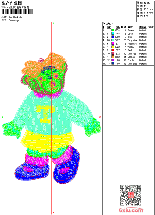 熊仔1 点此上传花版兑乐绣币/现金 emb花版参数: 大小:84.50 KB / 尺寸:72*95[毫米] / 针数:12442针 / 线色:11 / 格式:emb / 版本:7 版带文件需绣花软件方可打开,可配色打印导出各种格式或直接上机绣。如无绣花软件可下载1:1模拟效果图。 PNG图片信息:大小:0.1 (MB) /图宽*高:271x362(像素) 上传作者( semi*** ) 获得乐绣币:20个 emb下载 1:1图下载 关闭 相似花型推荐: 熊仔-卡通贴布熊 双喜5厘珠片 前幅车章2-老鹰_直升机刺绣 前幅车章1-老鹰章仔刺绣 前幅车章 懒羊羊 hello 凯蒂猫 Burberry A&FITCH 3 A&FITCH 2 A-FITCH字母章仔 吉祥如意 虎啸-工艺刺绣版 版绣3 版绣2 上一个花样:花 下一个花样:熊仔-卡通贴布熊