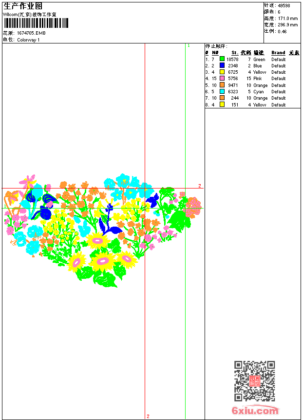 花 点此上传花版兑乐绣币/现金 emb花版参数: 大小:392.00 KB / 尺寸:297*171[毫米] / 针数:49598针 / 线色:6 / 格式:emb / 版本:9 版带文件需绣花软件方可打开,可配色打印导出各种格式或直接上机绣。如无绣花软件可下载1:1模拟效果图。 PNG图片信息:大小:0.8 (MB) /图宽*高:1124x647(像素) 上传作者( 6078*** ) 获得乐绣币:15个 emb下载 1:1图下载 关闭 相似花型推荐: 可爱卡通 梅花-工艺图案 勤能补拙 章仔刺绣 难得糊涂 小河流水-乱针绣工艺刺绣版带 官袍胸花 花枝 桃子_电脑桃子图案 高山 水溶花边 家纺 家纺绣绣牡丹花 米奇贴布绣 POLO 上一个花样:熊猫飞机 下一个花样:可爱卡通