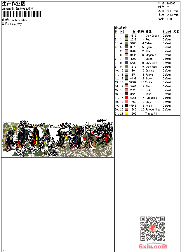 八仙神通图644x220 点此上传花版兑乐绣币/现金 emb花版参数: 大小:1.01 MB / 尺寸:641*221[毫米] / 针数:140703针 / 线色:21 / 格式:emb / 版本:2006 版带文件需绣花软件方可打开,可配色打印导出各种格式或直接上机绣。如无绣花软件可下载1:1模拟效果图。 PNG图片信息:大小:2.7 (MB) /图宽*高:2425x836(像素) 上传作者( 红路*** ) 获得乐绣币:30个 emb下载 1:1图下载 关闭 相似花型推荐: 百鹤图9446-工艺图案 百马图35105-工艺刺绣版 阿狸-卡通狐狸头像 双斧 标-标 标-刺绣标 蝴蝶 毛巾绣鞋垫 喜上梅梢-工艺刺绣版 肩花 下摆花-盘带刺绣 方块匹绣-pibu Treebird-刺绣小鸟 Audrey Hepburn(奥黛丽·赫本)刺绣图案 运动员 上一个花样:子独爱莲9835 下一个花样:百鹤图9446-工艺图案