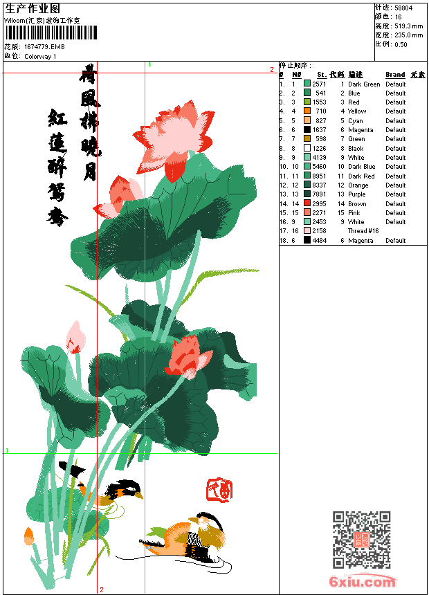 红莲鸳鸯-刺绣工艺图案 点此上传花版兑乐绣币/现金 emb花版参数: 大小:270.00 KB / 尺寸:235*519[毫米] / 针数:58804针 / 线色:16 / 格式:emb / 版本:2006 版带文件需绣花软件方可打开,可配色打印导出各种格式或直接上机绣。如无绣花软件可下载1:1模拟效果图。 PNG图片信息:大小:1.7 (MB) /图宽*高:889x1965(像素) 上传作者( 红路*** ) 获得乐绣币:30个 emb下载 1:1图下载 关闭 相似花型推荐: 莲花与鱼4424-工艺刺绣版 竹-郑板桥兰竹图 精品 17竹林小鸟-刺绣工艺版带图 竹鸟 8547-竹林刺绣工艺版 子独爱莲9835 八仙神通图644x220 百鹤图9446-工艺图案 百马图35105-工艺刺绣版 阿狸-卡通狐狸头像 双斧 标-标 标-刺绣标 蝴蝶 毛巾绣鞋垫 喜上梅梢-工艺刺绣版 上一个花样:牡丹花 精品 下一个花样:莲花与鱼4424-工艺刺绣版