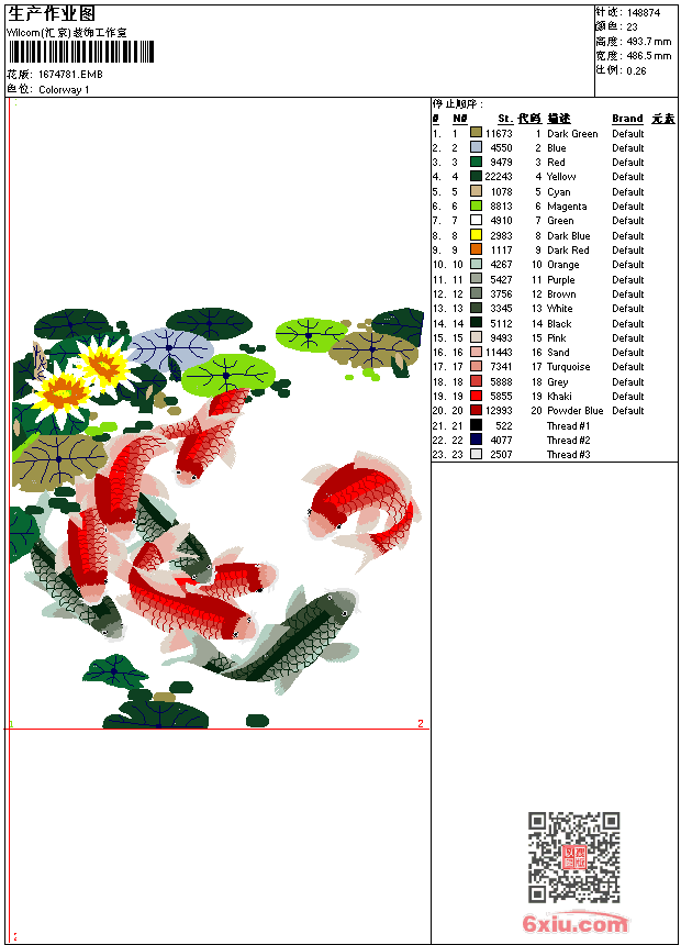 鱼-九鲤鱼-精品工艺品 点此上传花版兑乐绣币/现金 emb花版参数: 大小:695.50 KB / 尺寸:486*494[毫米] / 针数:148874针 / 线色:23 / 格式:emb / 版本:2006 版带文件需绣花软件方可打开,可配色打印导出各种格式或直接上机绣。如无绣花软件可下载1:1模拟效果图。 PNG图片信息:大小:3.9 (MB) /图宽*高:1841x1868(像素) 上传作者( 红路*** ) 获得乐绣币:160个 emb下载 1:1图下载 关闭 相似花型推荐: 牡丹花 精品 红莲鸳鸯-刺绣工艺图案 莲花与鱼4424-工艺刺绣版 竹-郑板桥兰竹图 精品 17竹林小鸟-刺绣工艺版带图 竹鸟 8547-竹林刺绣工艺版 子独爱莲9835 八仙神通图644x220 百鹤图9446-工艺图案 百马图35105-工艺刺绣版 阿狸-卡通狐狸头像 双斧 标-标 标-刺绣标 蝴蝶 上一个花样:凤凰_电脑图案_花版下载 下一个花样:牡丹花 精品