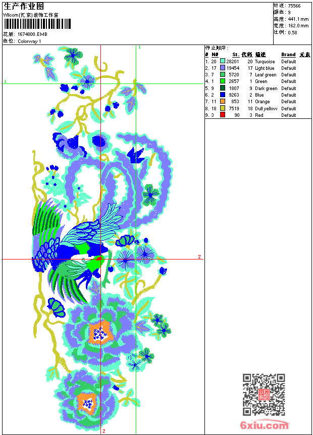 凤凰栖牡丹图 精品 点此上传花版兑乐绣币/现金 emb花版参数: 大小:412.50 KB / 尺寸:162*441[毫米] / 针数:75566针 / 线色:9 / 格式:emb / 版本:7 版带文件需绣花软件方可打开,可配色打印导出各种格式或直接上机绣。如无绣花软件可下载1:1模拟效果图。 PNG图片信息:大小:1.3 (MB) /图宽*高:613x1669(像素) 上传作者( wang*** ) 获得乐绣币:90个 emb下载 1:1图下载 关闭 相似花型推荐: 碎花前胸 标识,橄榄球标志刺绣 标志 刺绣fashion字母 大花 字母 rb002-标志字母刺绣 rb001-标志章仔 群鸟--7包针 水溶 凤凰 米老鼠 蜘蛛 人物 刘德华-乱针绣工艺版 人物-总理在汶川 精品 松齡鹤寿 上一个花样:单边定位花 下一个花样:碎花前胸