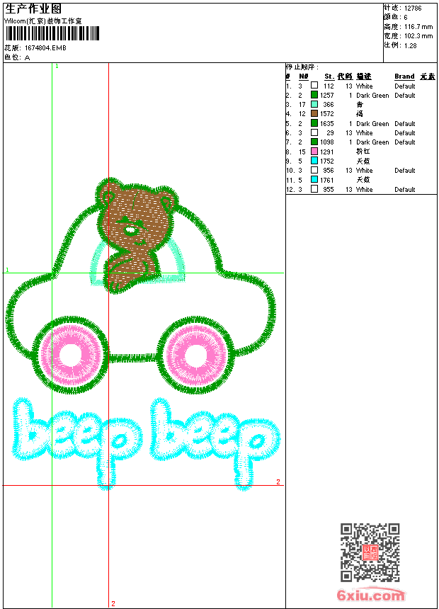 汽车-贴布绣卡通汽车版带 点此上传花版兑乐绣币/现金 emb花版参数: 大小:75.00 KB / 尺寸:102*117[毫米] / 针数:12786针 / 线色:6 / 格式:emb / 版本:9 版带文件需绣花软件方可打开,可配色打印导出各种格式或直接上机绣。如无绣花软件可下载1:1模拟效果图。 PNG图片信息:大小:0.2 (MB) /图宽*高:387x442(像素) 上传作者( 5831*** ) 获得乐绣币:20个 emb下载 1:1图下载 关闭 相似花型推荐: 小熊-贴布绣卡通 单边定位花 凤凰栖牡丹图 精品 碎花前胸 标识,橄榄球标志刺绣 标志 刺绣fashion字母 大花 字母 rb002-标志字母刺绣 rb001-标志章仔 群鸟--7包针 水溶 凤凰 米老鼠 蜘蛛 上一个花样:卡通猫 下一个花样:小熊-贴布绣卡通