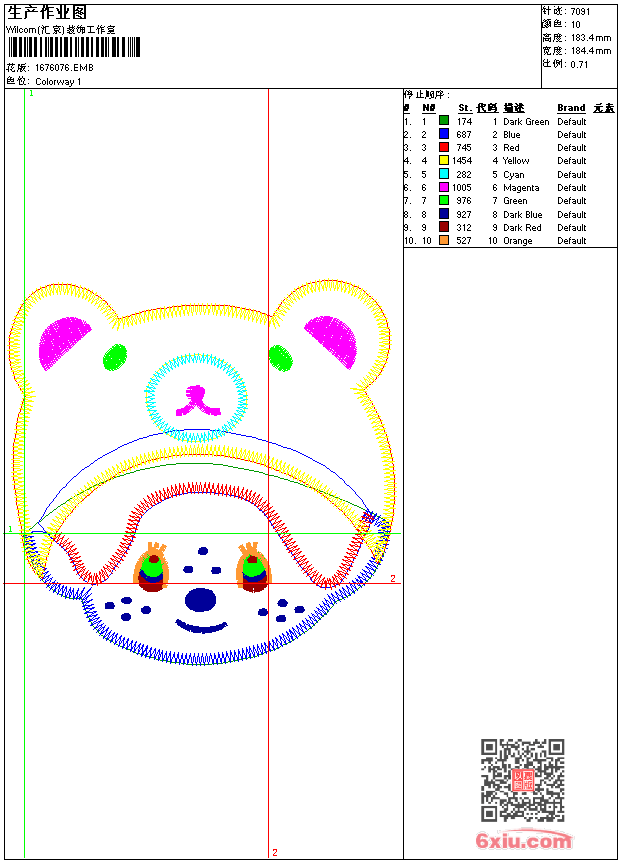 卡通小女孩 点此上传花版兑乐绣币/现金 emb花版参数: 大小:51.00 KB / 尺寸:184*183[毫米] / 针数:7091针 / 线色:10 / 格式:emb / 版本:9 版带文件需绣花软件方可打开,可配色打印导出各种格式或直接上机绣。如无绣花软件可下载1:1模拟效果图。 PNG图片信息:大小:0.3 (MB) /图宽*高:698x694(像素) 上传作者( shao*** ) 获得乐绣币:0个 emb下载 1:1图下载 关闭 相似花型推荐: 卡通小熊 摩托车 前幅珠片 徽标 字母 花 花-童装小花 卡通猫 汽车-贴布绣卡通汽车版带 小熊-贴布绣卡通 单边定位花 凤凰栖牡丹图 精品 碎花前胸 标识,橄榄球标志刺绣 标志 刺绣fashion字母 上一个花样:鸟叔 下一个花样:卡通小熊