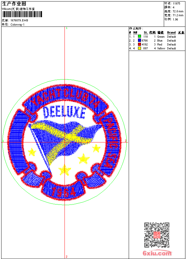袖章 点此上传花版兑乐绣币/现金 emb花版参数: 大小:51.50 KB / 尺寸:71*72[毫米] / 针数:11975针 / 线色:4 / 格式:emb / 版本:7 版带文件需绣花软件方可打开,可配色打印导出各种格式或直接上机绣。如无绣花软件可下载1:1模拟效果图。 PNG图片信息:大小:0.1 (MB) /图宽*高:270x273(像素) 上传作者( xiam*** ) 获得乐绣币:10个 emb下载 1:1图下载 关闭 相似花型推荐: 龙 鸟叔 卡通小女孩 卡通小熊 摩托车 前幅珠片 徽标 字母 花 花-童装小花 卡通猫 汽车-贴布绣卡通汽车版带 小熊-贴布绣卡通 单边定位花 凤凰栖牡丹图 精品 上一个花样:奥特曼 下一个花样:龙
