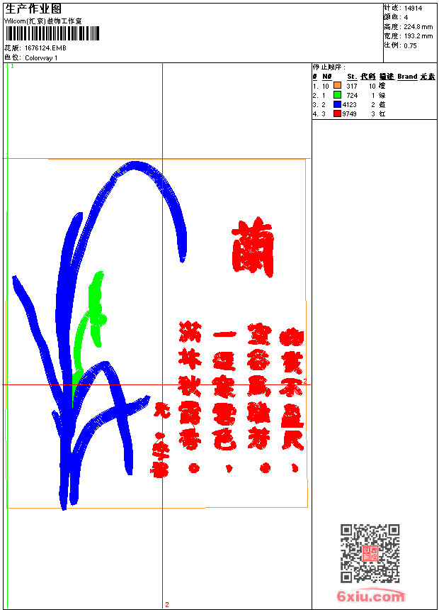兰 点此上传花版兑乐绣币/现金 emb花版参数: 大小:78.00 KB / 尺寸:193*225[毫米] / 针数:14914针 / 线色:4 / 格式:emb / 版本:7 版带文件需绣花软件方可打开,可配色打印导出各种格式或直接上机绣。如无绣花软件可下载1:1模拟效果图。 PNG图片信息:大小:0.3 (MB) /图宽*高:731x851(像素) 上传作者( 芙蓉*** ) 获得乐绣币:5个 emb下载 1:1图下载 关闭 相似花型推荐: 梅 凤凰 佛观音 神话人物刺绣工艺版 精品海狸鼠 赏梅 kama 型男秀女 1 型男秀女 034b-卡通刺绣鹿 章仔刺绣 花卉 鲤鱼 凤凰 荷花 骷髅头 上一个花样:竹 下一个花样:梅