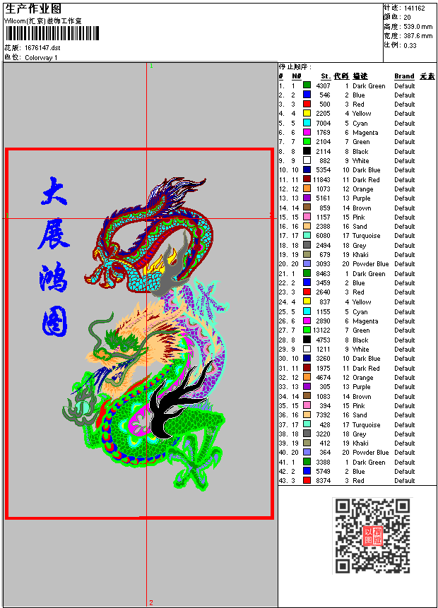 龙-大展宏图-工艺挂画 点此上传花版兑乐绣币/现金 dst花版参数: 大小:414.06 KB / 尺寸:388*539[毫米] / 针数:141162针 / 线色:20 / 格式:dst / 版本:6 版带文件需绣花软件方可打开,可配色打印导出各种格式或直接上机绣。如无绣花软件可下载1:1模拟效果图。 PNG图片信息:大小:2.4(MB) /图宽*高:1467x2039(像素) 上传作者( acbn*** ) 获得乐绣币:2个 dst下载 1:1图下载 关闭 相似花型推荐: 天使 小象 牛仔 夏 秋 贴布玖瑰花 JUICY1 JUICY 贴布绣美洋洋 盘带刺绣版带 苹果 一枝花 牡丹花 春_乱针绣 鸟 丹顶鹤 精品 上一个花样:大展鸿图-鹰 下一个花样:天使