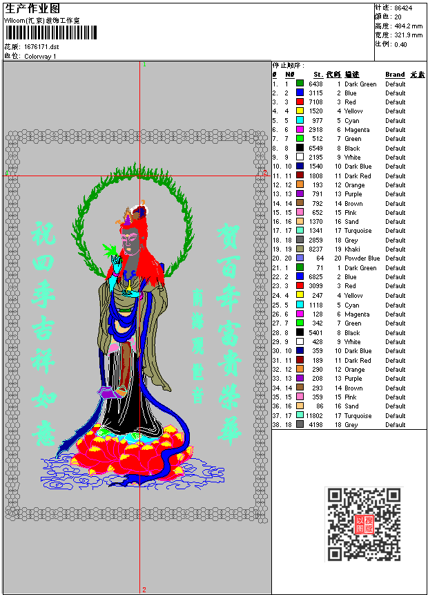 南海观世音 点此上传花版兑乐绣币/现金 dst花版参数: 大小:253.70 KB / 尺寸:322*484[毫米] / 针数:86424针 / 线色:20 / 格式:dst / 版本:6 版带文件需绣花软件方可打开,可配色打印导出各种格式或直接上机绣。如无绣花软件可下载1:1模拟效果图。 PNG图片信息:大小:1.4(MB) /图宽*高:1218x1832(像素) 上传作者( acbn*** ) 获得乐绣币:5个 dst下载 1:1图下载 关闭 相似花型推荐: 立体绣20 立体绣19 立体绣18 立体绣16 情侣-单针漫画人物刺绣 花5-爱心花卉刺绣 花4-刺卉 鸟 梅花 精品 花3 刺绣企鹅宝宝 鹦鹉 蝴蝶2 玫瑰花2 花2-刺绣玫瑰花 美女 上一个花样:南国红棉 下一个花样:立体绣20