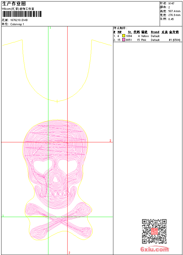 珠片-骷髅头刺绣 点此上传花版兑乐绣币/现金 emb花版参数: 大小:505.00 KB / 尺寸:277*507[毫米] / 针数:9147针 / 线色:2 / 格式:emb / 版本:9 版带文件需绣花软件方可打开,可配色打印导出各种格式或直接上机绣。如无绣花软件可下载1:1模拟效果图。 PNG图片信息:大小:0.3 (MB) /图宽*高:1048x1920(像素) 上传作者( 1074*** ) 获得乐绣币:30个 emb下载 1:1图下载 关闭 相似花型推荐: 珠片 唐装-古典唐装刺绣图案 前胸衣领刺绣图案 领花 考拉 卡通刺绣与字母 米老鼠 小姑娘 爱你一生一世 福 后肩 普绣+立体绣 (大童 前胸 ) 后领贴标 雄鹰 刺绣标志 上一个花样:领花 下一个花样:珠片