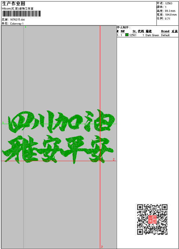 雅安平安 点此上传花版兑乐绣币/现金 dst花版参数: 大小:37.31 KB / 尺寸:185*89[毫米] / 针数:12563针 / 线色:1 / 格式:dst / 版本:6 版带文件需绣花软件方可打开,可配色打印导出各种格式或直接上机绣。如无绣花软件可下载1:1模拟效果图。 PNG图片信息:大小:0.3(MB) /图宽*高:699x338(像素) 上传作者( 张虎*** ) 获得乐绣币:0个 dst下载 1:1图下载 关闭 相似花型推荐: 猫_卡通KITTY刺绣猫 领花 领花 领花 珠片-骷髅头刺绣 珠片 唐装-古典唐装刺绣图案 前胸衣领刺绣图案 领花 考拉 卡通刺绣与字母 米老鼠 小姑娘 爱你一生一世 福 上一个花样:性感女孩-卡通珠片刺绣 下一个花样:猫_卡通KITTY刺绣猫