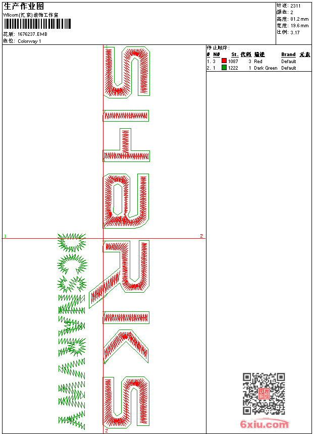 立体绣40 点此上传花版兑乐绣币/现金 emb花版参数: 大小:25.00 KB / 尺寸:20*81[毫米] / 针数:2310针 / 线色:2 / 格式:emb / 版本:8 版带文件需绣花软件方可打开,可配色打印导出各种格式或直接上机绣。如无绣花软件可下载1:1模拟效果图。 PNG图片信息:大小:0.0 (MB) /图宽*高:75x307(像素) 上传作者( 初为*** ) 获得乐绣币:20个 emb下载 1:1图下载 关闭 相似花型推荐: 立体绣39 立体绣38 立体绣37 立体绣36 立体绣35 立体绣34 立体绣33 立体绣32 立体绣31 立体绣30 立体绣29 立体绣28 立体绣27 立体绣26 立体绣25 上一个花样:j27-刺绣标志 下一个花样:立体绣39