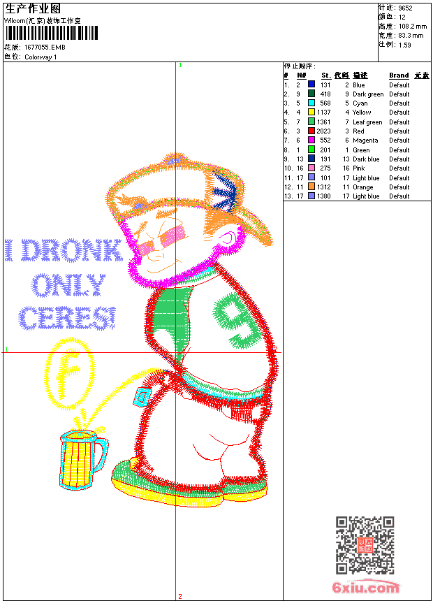 小男孩-贴布绣 点此上传花版兑乐绣币/现金 emb花版参数: 大小:110.00 KB / 尺寸:83*108[毫米] / 针数:9652针 / 线色:12 / 格式:emb / 版本:9 版带文件需绣花软件方可打开,可配色打印导出各种格式或直接上机绣。如无绣花软件可下载1:1模拟效果图。 PNG图片信息:大小:0.1 (MB) /图宽*高:315x410(像素) 上传作者( 1860*** ) 获得乐绣币:15个 emb下载 1:1图下载 关闭 相似花型推荐: 006-仙鹤送小孩刺绣图-贴布绣 005-袋鼠-贴布 004-刺绣贴布不倒翁 003-牛头标志刺绣-贴布绣 002-卡通熊-贴布绣 001-卡通老鼠 荷花 花 孔雀梅花 鹿-刺绣梅花鹿 马到成功 胸花珠片对花 随缘-文字图 格子玫瑰 NO13002-热带鱼图 上一个花样:蟹宝宝-海绵宝宝系列刺绣-卡通贴布绣 下一个花样:006-仙鹤送小孩刺绣图-贴布绣
