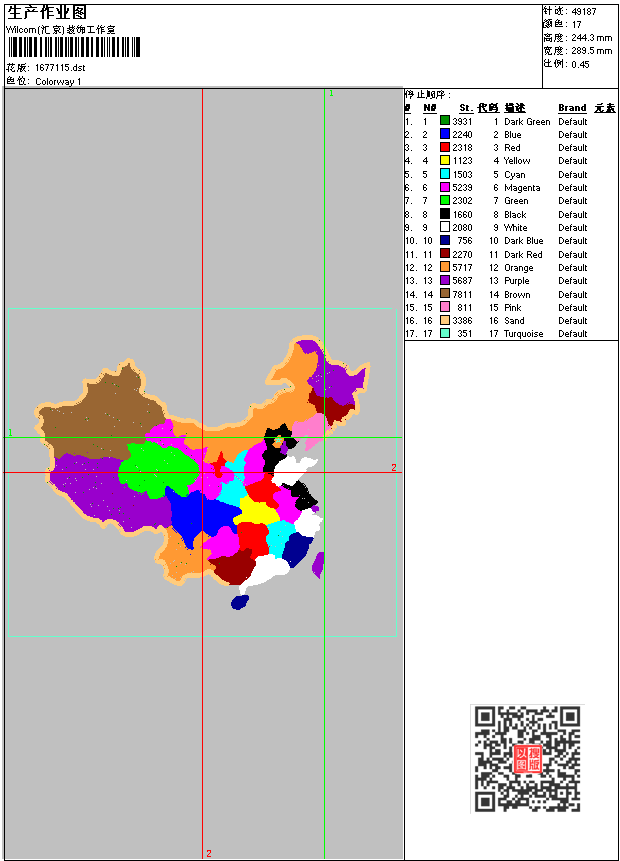地图-中国地图的刺绣图案 点此上传花版兑乐绣币/现金 dst花版参数: 大小:144.60 KB / 尺寸:290*244[毫米] / 针数:49187针 / 线色:17 / 格式:dst / 版本:6 版带文件需绣花软件方可打开,可配色打印导出各种格式或直接上机绣。如无绣花软件可下载1:1模拟效果图。 PNG图片信息:大小:0.9(MB) /图宽*高:1096x925(像素) 上传作者( liux*** ) 获得乐绣币:20个 dst下载 1:1图下载 关闭 相似花型推荐: 卡通魔鬼刺绣图案 吉祥-古典花纹刺绣 春归天地-梅花-工艺刺版 脚-脚印-脚掌的刺绣图案 米奇-米老鼠的卡通 jixiang-吉祥如意-文字类刺绣 船坨 乡村风光-风景类刺绣图案 鸟 花边,花边电脑,花边刺绣图案 008-中东风格图案 书法-诗词刺绣工艺版 klon-狮子头刺绣工艺花版-乱针绣 胸花-珠片 骷髅头-匹绣 上一个花样:忍-忍字挂画刺绣版带 下一个花样:卡通魔鬼刺绣图案