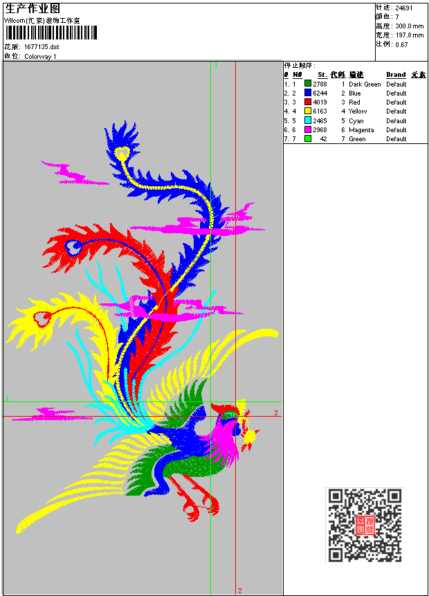 凤凰2-电脑凤凰图案_凤凰版带下载 点此上传花版兑乐绣币/现金 dst花版参数: 大小:72.84 KB / 尺寸:198*300[毫米] / 针数:24691针 / 线色:7 / 格式:dst / 版本:6 版带文件需绣花软件方可打开,可配色打印导出各种格式或直接上机绣。如无绣花软件可下载1:1模拟效果图。 PNG图片信息:大小:0.6(MB) /图宽*高:749x1135(像素) 上传作者( jxxu*** ) 获得乐绣币:10个 dst下载 1:1图下载 关闭 相似花型推荐: 兔子 人物-切格瓦拉-精品刺绣头像 老鹰 骷髅头 狼头 凤凰 龙 卡通人物 老虎 喜洋洋 汽车标志大全 龙凤 桌布 装饰 POLO 装饰花朵 Decorative Flowers 章仔 上一个花样:熊猫-熊猫吃竹子图 下一个花样:兔子
