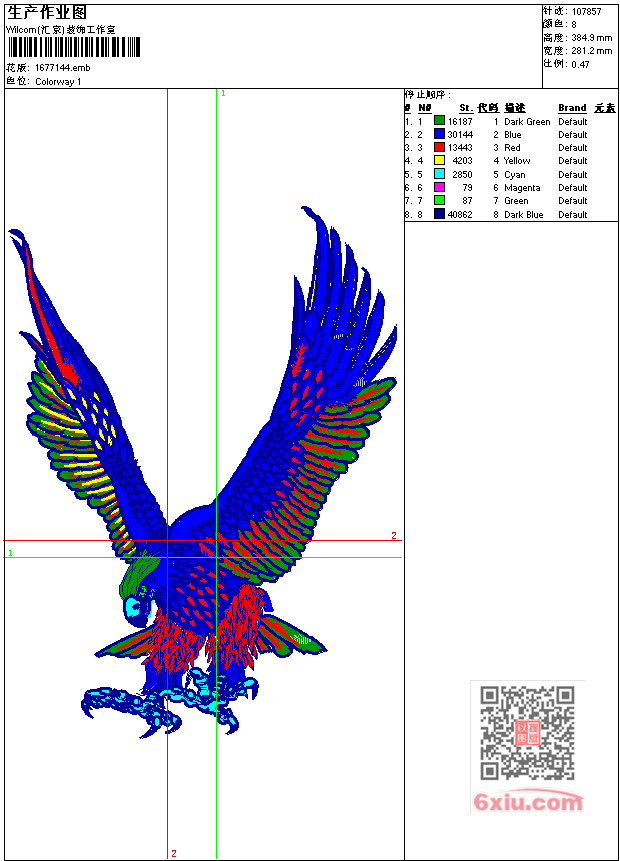 鹰-电脑老鹰图案 点此上传花版兑乐绣币/现金 emb花版参数: 大小:365.50 KB / 尺寸:281*385[毫米] / 针数:107857针 / 线色:8 / 格式:emb / 版本:9 版带文件需绣花软件方可打开,可配色打印导出各种格式或直接上机绣。如无绣花软件可下载1:1模拟效果图。 PNG图片信息:大小:1.3 (MB) /图宽*高:1064x1456(像素) 上传作者( hjgj*** ) 获得乐绣币:1个 emb下载 1:1图下载 关闭 相似花型推荐: 鸟-家纺刺绣图案 龙虎斗 鳄鱼图标 卡通金片绣 海豚 熊猫-熊猫吃竹子图 凤凰2-电脑凤凰图案_凤凰版带下载 兔子 人物-切格瓦拉-精品刺绣头像 老鹰 骷髅头 狼头 凤凰 龙 卡通人物 上一个花样:皇马 下一个花样:鸟-家纺刺绣图案