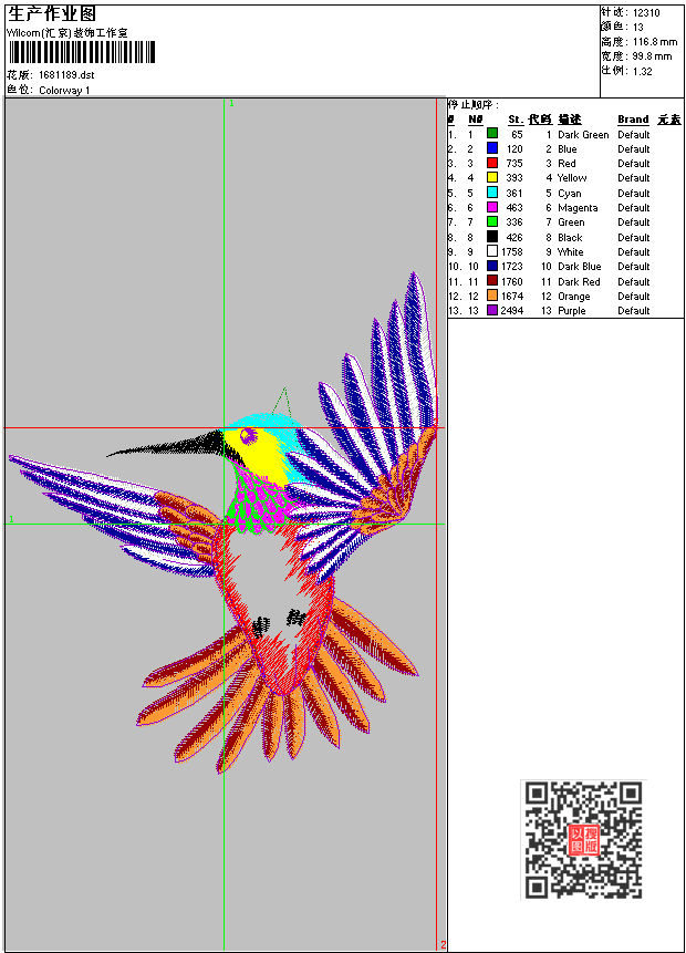 飞鸟 点此上传花版兑乐绣币/现金 dst花版参数: 大小:36.57 KB / 尺寸:100*117[毫米] / 针数:12310针 / 线色:13 / 格式:dst / 版本:6 版带文件需绣花软件方可打开,可配色打印导出各种格式或直接上机绣。如无绣花软件可下载1:1模拟效果图。 PNG图片信息:大小:0.2(MB) /图宽*高:378x442(像素) 上传作者( 1860*** ) 获得乐绣币:20个 dst下载 1:1图下载 关闭 相似花型推荐: 朵花1 adidas 心标 桃花喜鹊 鞋垫 蝴蝶花 少数工族特色版带 凤凰花开 精品 O形字母刺绣旗帜 A字样旗子 野猪跑-旗帜刺绣图 龙-双龙戏珠 童话-贴布小熊与小狗刺绣图 驴_驴头版带下载 吉祥-彩虹,彩虹刺绣图案 上一个花样:红衫公仔 下一个花样:朵花1
