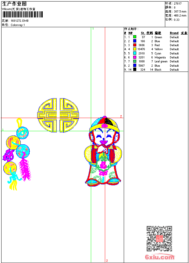 招财儿童-恭喜发财刺绣图案 点此上传花版兑乐绣币/现金 emb花版参数: 大小:150.00 KB / 尺寸:400*308[毫米] / 针数:27817针 / 线色:8 / 格式:emb / 版本:6 版带文件需绣花软件方可打开,可配色打印导出各种格式或直接上机绣。如无绣花软件可下载1:1模拟效果图。 PNG图片信息:大小:1.1 (MB) /图宽*高:1514x1164(像素) 上传作者( zsq8*** ) 获得乐绣币:25个 emb下载 1:1图下载 关闭 相似花型推荐: 扇子-扇形花卉刺绣 葡萄 竹报平安刺绣图 猫-猫抓蝴蝶图-乱针绣插针刺绣 凤凰_电脑凤凰图案_凤凰版带下载 花鸟图 四特酒商标 帽子-魔法帽子刺绣图案 普通版带 靠垫 梅花 花草,葡萄电脑,葡萄刺绣图案 蒲公英 敞篷车 老虎开车 上一个花样:牡丹花电脑,牡丹花刺绣图案 下一个花样:扇子-扇形花卉刺绣