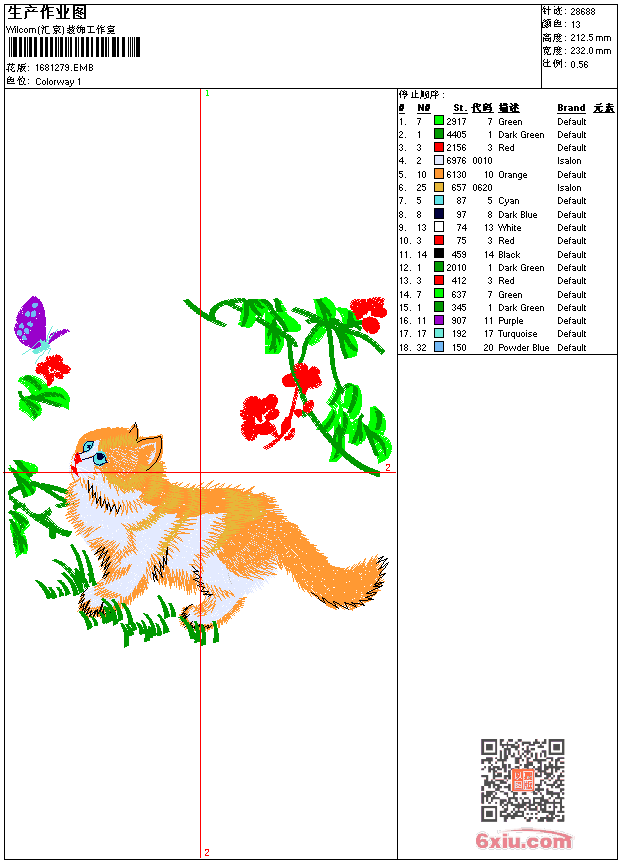 小猫抓蝴蝶刺绣图 点此上传花版兑乐绣币/现金 emb花版参数: 大小:167.50 KB / 尺寸:232*213[毫米] / 针数:28688针 / 线色:13 / 格式:emb / 版本:9 版带文件需绣花软件方可打开,可配色打印导出各种格式或直接上机绣。如无绣花软件可下载1:1模拟效果图。 PNG图片信息:大小:0.7 (MB) /图宽*高:878x804(像素) 上传作者( qian*** ) 获得乐绣币:10个 emb下载 1:1图下载 关闭 相似花型推荐: 旗袍牡丹 自行车 靠垫版带-抱枕刺绣图案 蝴蝶 挂坠-吉祥-福字双鱼挂坠 牡丹花电脑,牡丹花刺绣图案 招财儿童-恭喜发财刺绣图案 扇子-扇形花卉刺绣 葡萄 竹报平安刺绣图 猫-猫抓蝴蝶图-乱针绣插针刺绣 凤凰_电脑凤凰图案_凤凰版带下载 花鸟图 四特酒商标 帽子-魔法帽子刺绣图案 上一个花样:猫与蝴蝶 下一个花样:旗袍牡丹