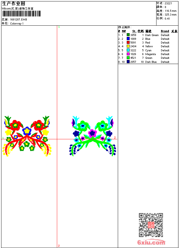 鞋面花 点此上传花版兑乐绣币/现金 emb花版参数: 大小:93.50 KB / 尺寸:325*117[毫米] / 针数:23221针 / 线色:8 / 格式:emb / 版本:2006 版带文件需绣花软件方可打开,可配色打印导出各种格式或直接上机绣。如无绣花软件可下载1:1模拟效果图。 PNG图片信息:大小:0.5 (MB) /图宽*高:1231x441(像素) 上传作者( 小慧*** ) 获得乐绣币:3个 emb下载 1:1图下载 关闭 相似花型推荐: 甜蜜时钟 龙-龙戏珠刺绣图案 龙-逼真双龙 可爱的懒洋洋 海豚 楼-高楼大厦的刺绣图案 猫与蝴蝶 小猫抓蝴蝶刺绣图 旗袍牡丹 自行车 靠垫版带-抱枕刺绣图案 蝴蝶 挂坠-吉祥-福字双鱼挂坠 牡丹花电脑,牡丹花刺绣图案 招财儿童-恭喜发财刺绣图案 上一个花样:美女 下一个花样:甜蜜时钟
