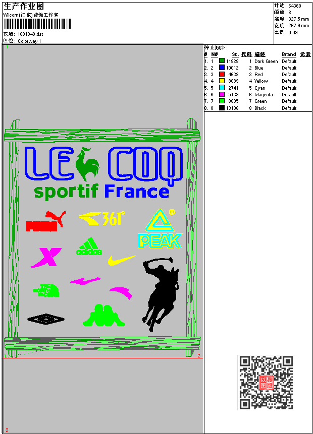 运动刺绣标志大全 点此上传花版兑乐绣币/现金 dst花版参数: 大小:189.06 KB / 尺寸:268*328[毫米] / 针数:64360针 / 线色:8 / 格式:dst / 版本:6 版带文件需绣花软件方可打开,可配色打印导出各种格式或直接上机绣。如无绣花软件可下载1:1模拟效果图。 PNG图片信息:大小:0.7(MB) /图宽*高:1014x1239(像素) 上传作者( scch*** ) 获得乐绣币:30个 dst下载 1:1图下载 关闭 相似花型推荐: 虎 年年有佘 抽象珠片花卉刺绣图 exp jeans collar chiffon flowers vulture 花型-抽像花卉刺绣 T61-大菱形交叉匹绣图案 T64-黑白相间匹绣图 T78-X形交叉匹绣图案 T66-编织草席形匹绣 T73-琉璃瓦形匹绣 T67-G字母菱形匹绣 T59-T形方格匹绣图案 上一个花样:童装贴布绣 下一个花样:虎