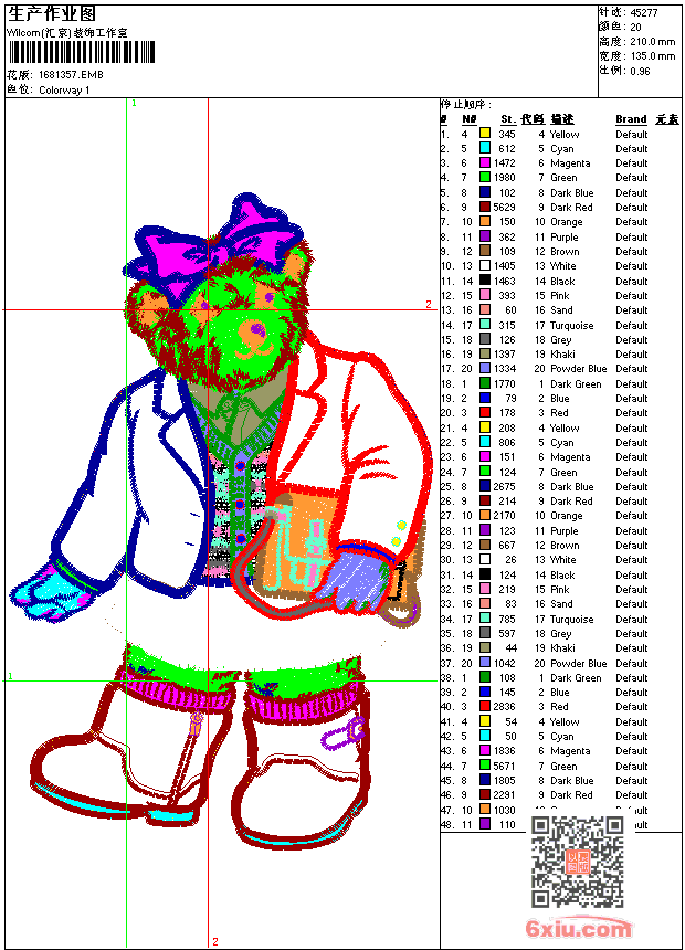 大熊-卡通熊博士 点此上传花版兑乐绣币/现金 emb花版参数: 大小:242.00 KB / 尺寸:135*210[毫米] / 针数:45277针 / 线色:20 / 格式:emb / 版本:9 版带文件需绣花软件方可打开,可配色打印导出各种格式或直接上机绣。如无绣花软件可下载1:1模拟效果图。 PNG图片信息:大小:0.4 (MB) /图宽*高:511x795(像素) 上传作者( 吕殿*** ) 获得乐绣币:10个 emb下载 1:1图下载 关闭 相似花型推荐: 卡通恐龙 马头 龙凤 虎头 好看的就分享了 大肚佛 39万3-窗帘匹绣图案 G001-吉祥抽象竖条版带 浪漫小屋-电脑十字版 童装卡通刺绣图 安踏客供原版 175641-圆形章仔刺绣 版 鸟儿唱歌 童装贴布绣 运动刺绣标志大全 上一个花样:简单卡通蝴蝶 下一个花样:卡通恐龙