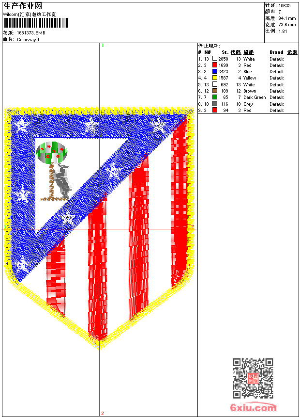 Atletico Madrid 点此上传花版兑乐绣币/现金 emb花版参数: 大小:46.00 KB / 尺寸:74*94[毫米] / 针数:10635针 / 线色:7 / 格式:emb / 版本:9 版带文件需绣花软件方可打开,可配色打印导出各种格式或直接上机绣。如无绣花软件可下载1:1模拟效果图。 PNG图片信息:大小:0.2 (MB) /图宽*高:279x356(像素) 上传作者( whis*** ) 获得乐绣币:13个 emb下载 1:1图下载 关闭 相似花型推荐: deportivo aston villa Barcelona smiling hand-微笑的手掌 messi 字母V Virgo-五星人头像 meduse-女神 荷花刺绣图 盆景与花 15-S-玫瑰花 20121025-G002-7-刺绣窗帘图 1103-12-雕孔边下摆刺绣 简单卡通蝴蝶 大熊-卡通熊博士 上一个花样:hercule 下一个花样:deportivo