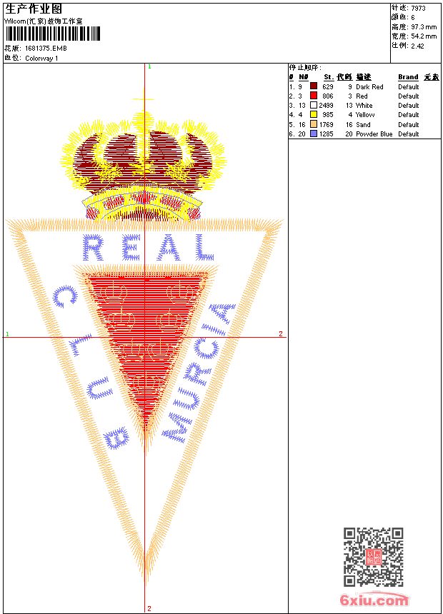 murcia 点此上传花版兑乐绣币/现金 emb花版参数: 大小:50.00 KB / 尺寸:54*97[毫米] / 针数:7973针 / 线色:6 / 格式:emb / 版本:9 版带文件需绣花软件方可打开,可配色打印导出各种格式或直接上机绣。如无绣花软件可下载1:1模拟效果图。 PNG图片信息:大小:0.1 (MB) /图宽*高:206x369(像素) 上传作者( whis*** ) 获得乐绣币:13个 emb下载 1:1图下载 关闭 相似花型推荐: hercule Atletico Madrid deportivo aston villa Barcelona smiling hand-微笑的手掌 messi 字母V Virgo-五星人头像 meduse-女神 荷花刺绣图 盆景与花 15-S-玫瑰花 20121025-G002-7-刺绣窗帘图 1103-12-雕孔边下摆刺绣 上一个花样:osasuna 下一个花样:hercule