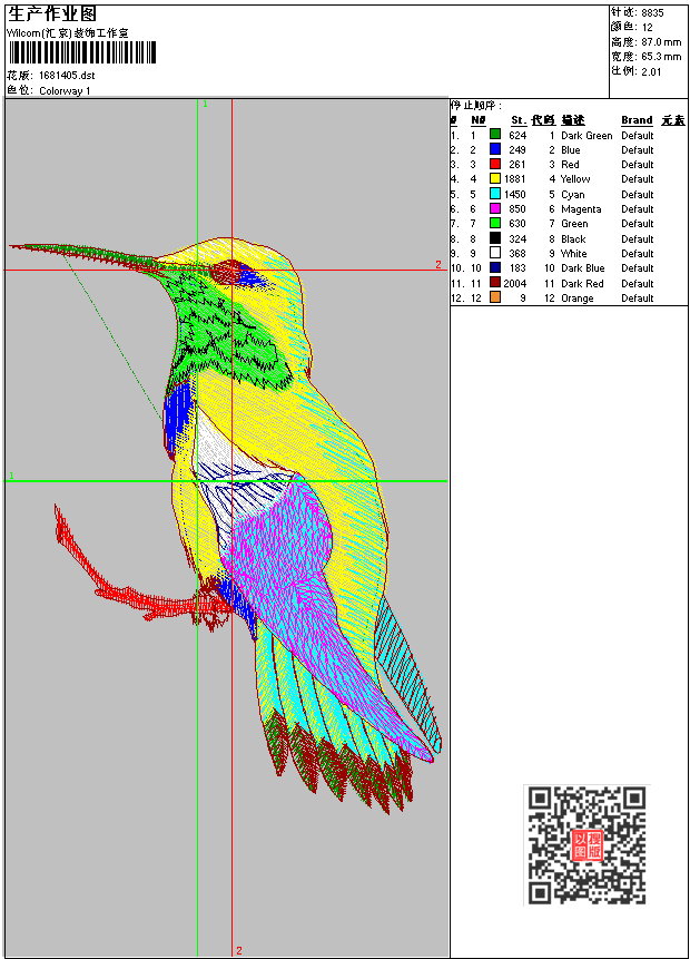 蜂鳥-动物图案 点此上传花版兑乐绣币/现金 dst花版参数: 大小:26.38 KB / 尺寸:65*87[毫米] / 针数:8835针 / 线色:12 / 格式:dst / 版本:6 版带文件需绣花软件方可打开,可配色打印导出各种格式或直接上机绣。如无绣花软件可下载1:1模拟效果图。 PNG图片信息:大小:0.1(MB) /图宽*高:247x330(像素) 上传作者( Visc*** ) 获得乐绣币:16个 dst下载 1:1图下载 关闭 相似花型推荐: 大船-轮船刺绣素材 海洋章仔 老虎蝴蝶 笑口常開-刺绣笑脸图案 燈塔-灯塔刺绣图案 古典大屋 D0102A-水溶领形花 D0102-2-方型交叉圆圈水溶版 d0102-水溶衣领刺绣版带 龙 双龙戏珠 古代官服戏服清朝 牡丹花卉图-花语间韵-精品 鸟喜雀噪梅花 精品 非常漂亮的工艺品-猛虎图 菊-菊花 DH16-水溶刺绣图案 上一个花样:哆啦A夢-刺绣叮当猫 下一个花样:大船-轮船刺绣素材