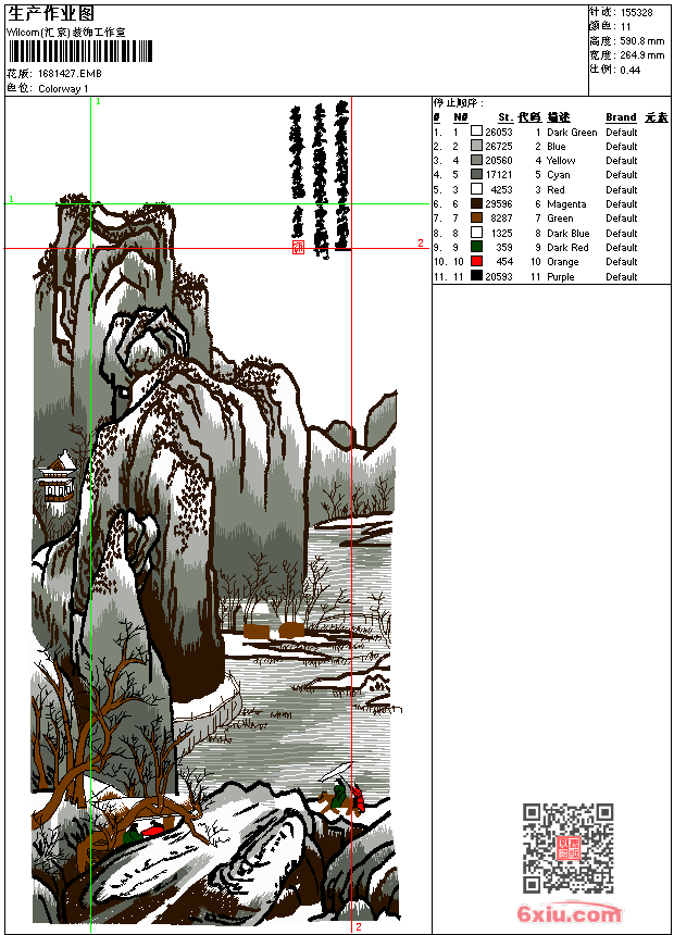 山水画唐朝刺绣 精品 点此上传花版兑乐绣币/现金 emb花版参数: 大小:709.00 KB / 尺寸:265*591[毫米] / 针数:155328针 / 线色:11 / 格式:emb / 版本:2006 版带文件需绣花软件方可打开,可配色打印导出各种格式或直接上机绣。如无绣花软件可下载1:1模拟效果图。 PNG图片信息:大小:3.4 (MB) /图宽*高:1002x2235(像素) 上传作者( 工艺*** ) 获得乐绣币:200个 emb下载 1:1图下载 关闭 相似花型推荐: 2013年全新男装 老鹰环球标志刺绣 刺绣老鹰标志 马-立体金片刺绣卡通马 鹤-毛巾链目金片绣三合一刺绣工艺版 船-珠片刺绣大海与船 long-线条龙 抽象花卉刺绣 sampdoria-标志章仔图 fiorentina-刺绣标志 LAZIO-翅膀形章仔标志 PARMA-球队标志刺绣 JUVENTUS-椭圆形标志 AC MILAN-球队标志刺绣 INTER MILAN-五星标志章仔 上一个花样:山水画唐朝绣二_精品 下一个花样:2013年全新男装