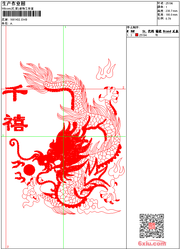 龙-千禧龙 点此上传花版兑乐绣币/现金 emb花版参数: 大小:86.00 KB / 尺寸:180*231[毫米] / 针数:25196针 / 线色:1 / 格式:emb / 版本:9 版带文件需绣花软件方可打开,可配色打印导出各种格式或直接上机绣。如无绣花软件可下载1:1模拟效果图。 PNG图片信息:大小:0.5 (MB) /图宽*高:681x873(像素) 上传作者( 飞飞*** ) 获得乐绣币:20个 emb下载 1:1图下载 关闭 相似花型推荐: 清得暗送-梅花刺绣图-电脑十字绣图案 毛巾绣豹头 珠片老虎 山水画唐朝绣二_精品 山水画唐朝刺绣 精品 2013年全新男装 老鹰环球标志刺绣 刺绣老鹰标志 马-立体金片刺绣卡通马 鹤-毛巾链目金片绣三合一刺绣工艺版 船-珠片刺绣大海与船 long-线条龙 抽象花卉刺绣 sampdoria-标志章仔图 fiorentina-刺绣标志 上一个花样:紫葡萄 下一个花样:清得暗送-梅花刺绣图-电脑十字绣图案