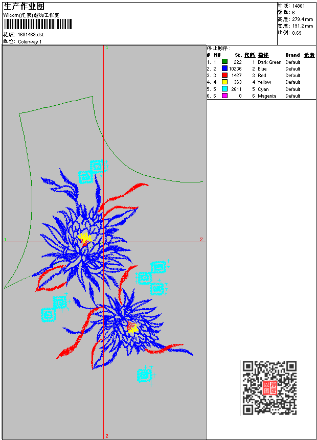 领花 点此上传花版兑乐绣币/现金 dst花版参数: 大小:44.04 KB / 尺寸:191*279[毫米] / 针数:14861针 / 线色:6 / 格式:dst / 版本:6 版带文件需绣花软件方可打开,可配色打印导出各种格式或直接上机绣。如无绣花软件可下载1:1模拟效果图。 PNG图片信息:大小:0.3(MB) /图宽*高:724x1057(像素) 上传作者( yyaz*** ) 获得乐绣币:3个 dst下载 1:1图下载 关闭 相似花型推荐: 雕孔绣 精品边花,带花同,枕边花,背带花 工艺抱枕精品版带EMB 标志刺绣图案 狮子字母绣 鸟 木棉花 南国红棉-工艺版 果子 牡丹大花 桌布方巾花抱枕花 精品抱枕版带 汽车 狼头 禅-书法刺绣图案 劲霸 树 上一个花样:苹果笑脸刺绣图 下一个花样:雕孔绣