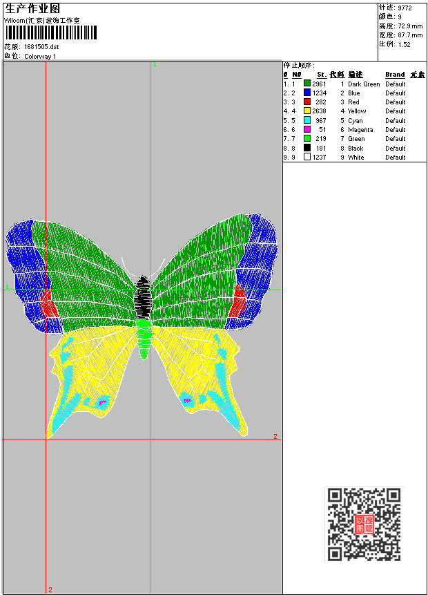 蝴蝶2 点此上传花版兑乐绣币/现金 dst花版参数: 大小:29.13 KB / 尺寸:88*73[毫米] / 针数:9772针 / 线色:9 / 格式:dst / 版本:6 版带文件需绣花软件方可打开,可配色打印导出各种格式或直接上机绣。如无绣花软件可下载1:1模拟效果图。 PNG图片信息:大小:0.1(MB) /图宽*高:332x276(像素) 上传作者( Visc*** ) 获得乐绣币:18个 dst下载 1:1图下载 关闭 相似花型推荐: 蝴蝶刺绣图案 可爱熊-链式毛巾卡通刺绣 盘带领花 盘带绣-盘带珠片二合一特种绣 虎-贴布珠片二合一刺绣 米奇-米奇打篮球贴布绣 米妮-卡通贴布绣 童装字母贴布绣 服装十字 蝎子 emb 汽车 jeep标志 logo 火龙 愤怒的龙 双狮标志刺绣图 熊仔 狗仔-卡通化小刺绣小狗 上一个花样:蝴蝶3 下一个花样:蝴蝶刺绣图案