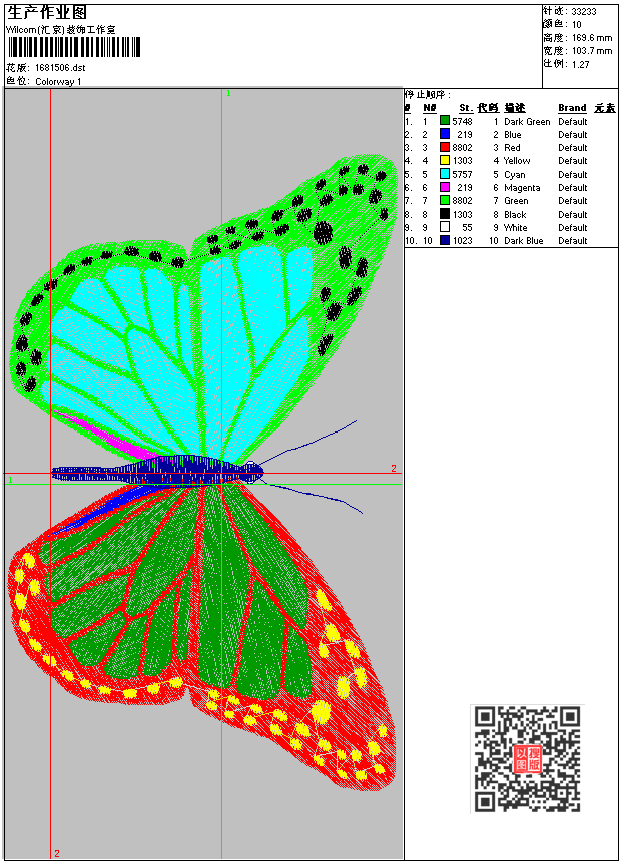 蝴蝶3 点此上传花版兑乐绣币/现金 dst花版参数: 大小:97.86 KB / 尺寸:104*170[毫米] / 针数:33233针 / 线色:10 / 格式:dst / 版本:6 版带文件需绣花软件方可打开,可配色打印导出各种格式或直接上机绣。如无绣花软件可下载1:1模拟效果图。 PNG图片信息:大小:0.4(MB) /图宽*高:393x642(像素) 上传作者( Visc*** ) 获得乐绣币:20个 dst下载 1:1图下载 关闭 相似花型推荐: 蝴蝶2 蝴蝶刺绣图案 可爱熊-链式毛巾卡通刺绣 盘带领花 盘带绣-盘带珠片二合一特种绣 虎-贴布珠片二合一刺绣 米奇-米奇打篮球贴布绣 米妮-卡通贴布绣 童装字母贴布绣 服装十字 蝎子 emb 汽车 jeep标志 logo 火龙 愤怒的龙 双狮标志刺绣图 熊仔 上一个花样:蝴蝶4-蝴蝶图案大全 下一个花样:蝴蝶2