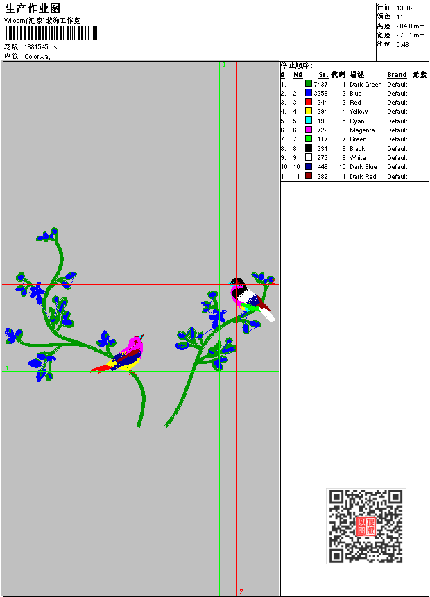 两只小鸟 点此上传花版兑乐绣币/现金 dst花版参数: 大小:41.23 KB / 尺寸:276*204[毫米] / 针数:13902针 / 线色:11 / 格式:dst / 版本:6 版带文件需绣花软件方可打开,可配色打印导出各种格式或直接上机绣。如无绣花软件可下载1:1模拟效果图。 PNG图片信息:大小:0.3(MB) /图宽*高:1045x772(像素) 上传作者( 黑苹*** ) 获得乐绣币:2个 dst下载 1:1图下载 关闭 相似花型推荐: 花边,花边刺绣 字母,标志 葡萄,葡萄刺绣图案 蘑菇 原版配色观世音菩萨 3102鲤鱼工艺图 仙鹤 荷花 巧虎 琪琪 卡通小花 梅花 小花瓣图 花朵 亮片长条 上一个花样:童装贴布绣-鹿 下一个花样:花边,花边刺绣