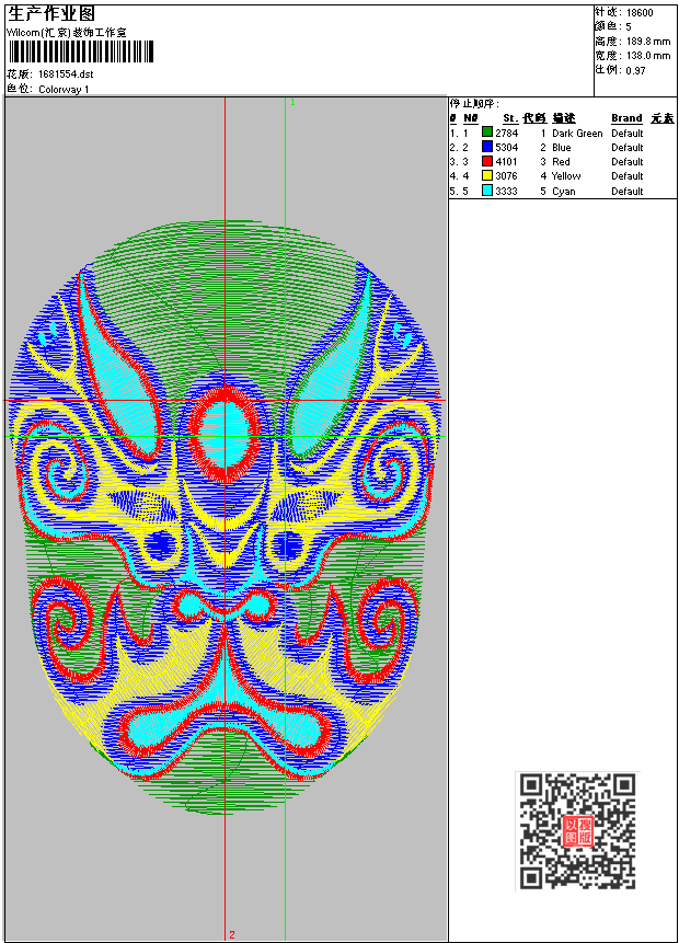脸谱_脸谱刺绣图案 点此上传花版兑乐绣币/现金 dst花版参数: 大小:54.99 KB / 尺寸:138*190[毫米] / 针数:18600针 / 线色:5 / 格式:dst / 版本:6 版带文件需绣花软件方可打开,可配色打印导出各种格式或直接上机绣。如无绣花软件可下载1:1模拟效果图。 PNG图片信息:大小:0.6(MB) /图宽*高:522x718(像素) 上传作者( 小玩*** ) 获得乐绣币:25个 dst下载 1:1图下载 关闭 相似花型推荐: 船锚标志刺绣 骷髅头刺绣图案 k字贴布绣 小狗 椭圆形章仔 卡通动物类章仔 风景类章仔 童装贴布绣-鹿 两只小鸟 花边,花边刺绣 字母,标志 葡萄,葡萄刺绣图案 蘑菇 原版配色观世音菩萨 3102鲤鱼工艺图 上一个花样:喜洋洋 下一个花样:船锚标志刺绣