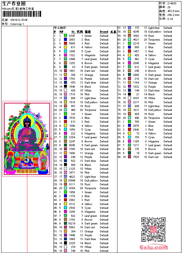 如来佛 点此上传花版兑乐绣币/现金 emb花版参数: 大小:606.00 KB / 尺寸:296*453[毫米] / 针数:214830针 / 线色:20 / 格式:emb / 版本:9 版带文件需绣花软件方可打开,可配色打印导出各种格式或直接上机绣。如无绣花软件可下载1:1模拟效果图。 PNG图片信息:大小:3.0 (MB) /图宽*高:1121x1714(像素) 上传作者( scql*** ) 获得乐绣币:30个 emb下载 1:1图下载 关闭 相似花型推荐: 大象-米粒针法-三角针法刺绣图案 小熊-贴布小熊刺绣 脸谱 脸谱图案_脸谱刺绣图案 老鹰头刺绣 蝴蝶与花 老鹰 牛头刺绣图案 蛇_蛇刺绣图案_电脑蛇图案 花枝俏 春秋战国之战车2 春秋战国之战车篇1 民族纹样条3 民族纹样条1 块状橄榄条 小熊与小猪贴布绣-沙发和汽车椅垫刺绣用图 上一个花样:观音 观世音菩萨 下一个花样:大象-米粒针法-三角针法刺绣图案
