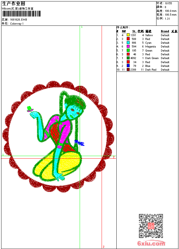 秀女,拿花的少女刺绣图 点此上传花版兑乐绣币/现金 emb花版参数: 大小:76.50 KB / 尺寸:100*100[毫米] / 针数:10155针 / 线色:8 / 格式:emb / 版本:9 版带文件需绣花软件方可打开,可配色打印导出各种格式或直接上机绣。如无绣花软件可下载1:1模拟效果图。 PNG图片信息:大小:0.1 (MB) /图宽*高:381x379(像素) 上传作者( scql*** ) 获得乐绣币:20个 emb下载 1:1图下载 关闭 相似花型推荐: 鸡 公鸡刺绣图 龙版带,刺绣龙图案 莲花,荷花工艺版带 孔雀梅花 玫瑰花 孔雀 荷花与蜻蜓刺绣工艺版 水果 郑板桥兰竹图 工艺刺绣挂画 莲花鲤鱼 工艺刺绣版 观音 观世音菩萨 如来佛 大象-米粒针法-三角针法刺绣图案 小熊-贴布小熊刺绣 脸谱 脸谱图案_脸谱刺绣图案 上一个花样:NBA标 下一个花样:鸡 公鸡刺绣图