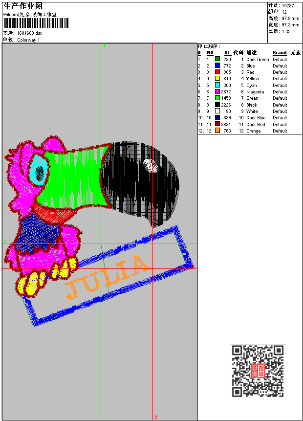 鹦鹉 点此上传花版兑乐绣币/现金 dst花版参数: 大小:42.36 KB / 尺寸:97*98[毫米] / 针数:14287针 / 线色:12 / 格式:dst / 版本:6 版带文件需绣花软件方可打开,可配色打印导出各种格式或直接上机绣。如无绣花软件可下载1:1模拟效果图。 PNG图片信息:大小:0.2(MB) /图宽*高:369x370(像素) 上传作者( zrp8*** ) 获得乐绣币:0个 dst下载 1:1图下载 关闭 相似花型推荐: 扫地的女孩 兔子 五动态小绵羊 金玉满堂八仙 龙-双龙抢珠刺绣图 --古代清朝官服吉祥 卡通 船 乘风破浪 刺绣图 十字绣鞋垫刺绣图案 卡通老鼠 59-6 小花瓣 格子匹绣 驴 姐妹 卡通贴布刺绣猴子 男装 后背字母刺绣 地球标志 上一个花样:恐龙 下一个花样:扫地的女孩