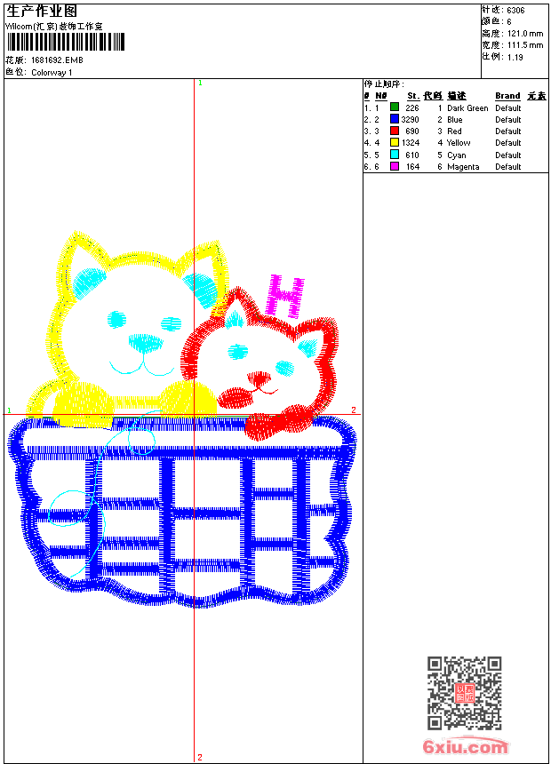 两只小猫 点此上传花版兑乐绣币/现金 emb花版参数: 大小:41.00 KB / 尺寸:111*121[毫米] / 针数:6306针 / 线色:6 / 格式:emb / 版本:2006 版带文件需绣花软件方可打开,可配色打印导出各种格式或直接上机绣。如无绣花软件可下载1:1模拟效果图。 PNG图片信息:大小:0.2 (MB) /图宽*高:422x458(像素) 上传作者( ming*** ) 获得乐绣币:5个 emb下载 1:1图下载 关闭 相似花型推荐: gorono字母与皇冠刺绣图 wingling 毛巾绣 心 圣诞屋 圣诞老人,圣诞节刺绣素材 牛仔裤后袋之翅膀图 牛仔裤后袋版带 牛仔裤版带1 牛仔裤版带 花 单色皇冠刺绣图 英文与数字的刺绣图 英文GASH 皇冠 信鸽 上一个花样:白雪公主 下一个花样:gorono字母与皇冠刺绣图
